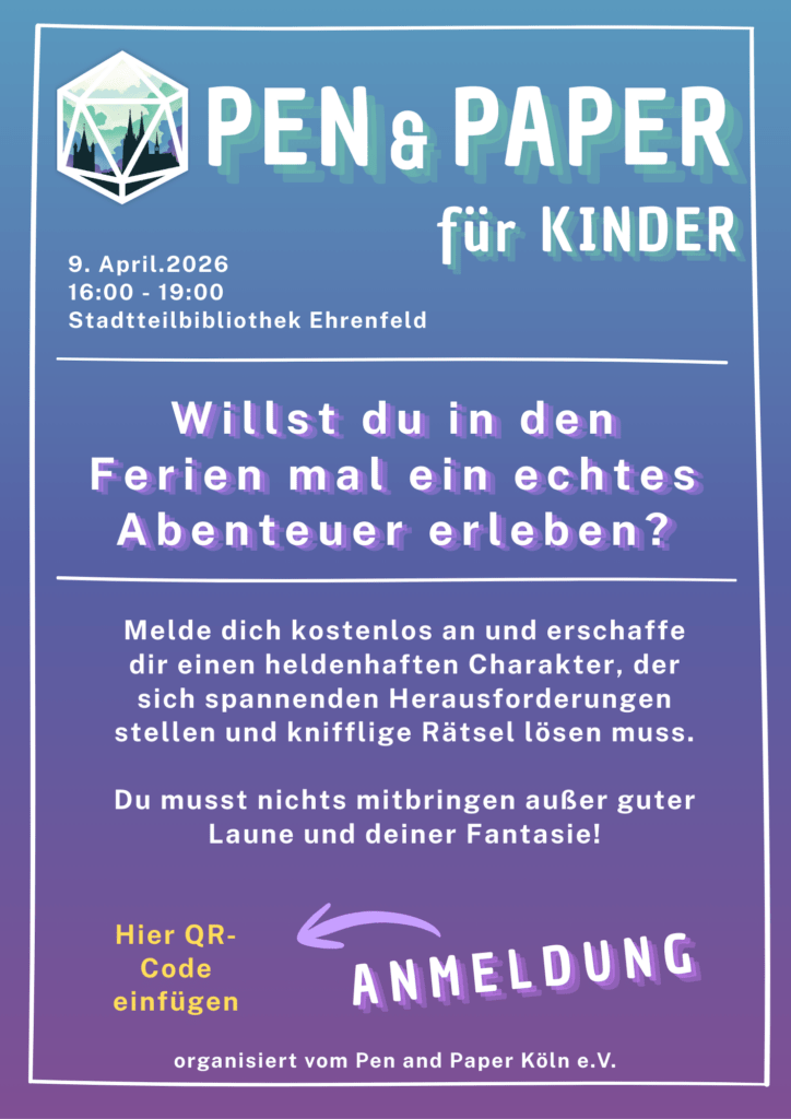 14Dez15:3020:30ttRPG for English Speakers15:30 - 20:30(GMT+01:00) Demokratie Space, Kalker Hauptstraße 170, 51103 Köln